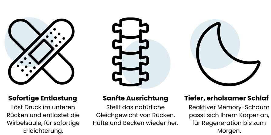 Es entlastet die Wirbelsäule, stabilisiert den unteren Rücken und hilft deinem Körper, sich während des Schlafs zu regenerieren.